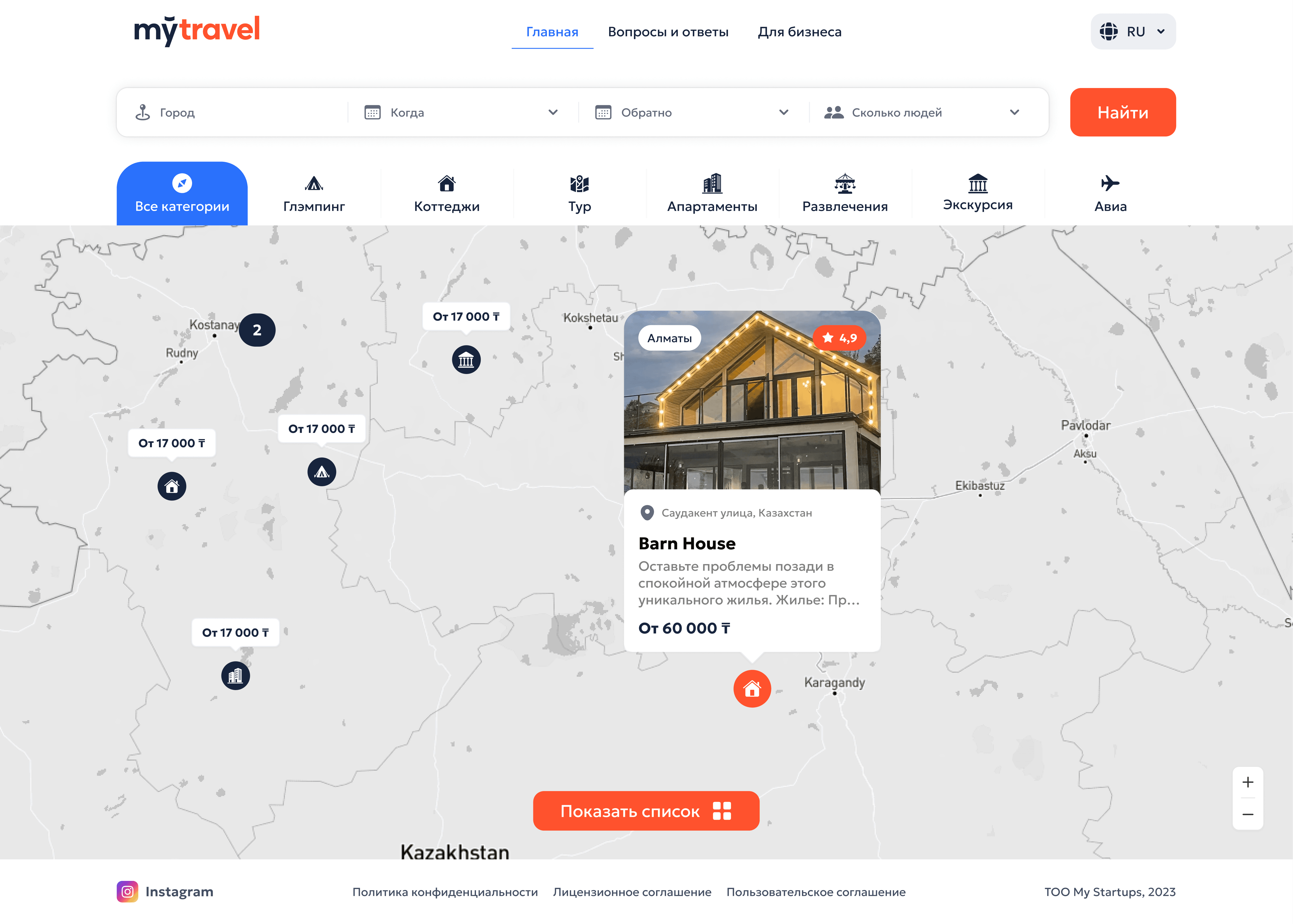 Mytravel помогает пользователям удобно организовывать поездки, туры и путешествия: от идеи до возвращения домой. В одном месте можно спланировать маршрут, забронировать жильё, выбрать достопримечательности, составить бюджет и делиться планом с друзьями или попутчиками.